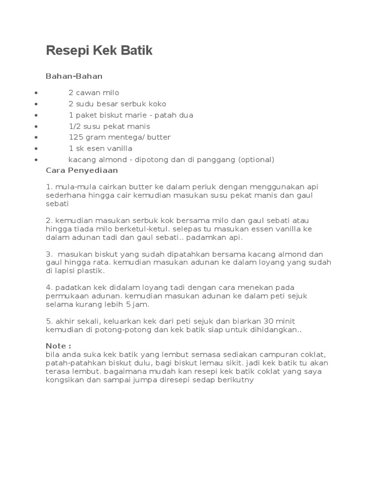 Resepi Kek Batik Kurang Manis Surat Rasmi T