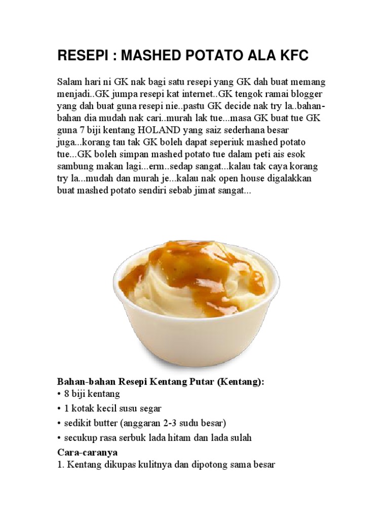 Resepi Mashed Potato Ala Kfc Bahan Mykitchen Fooddelivery Facebook