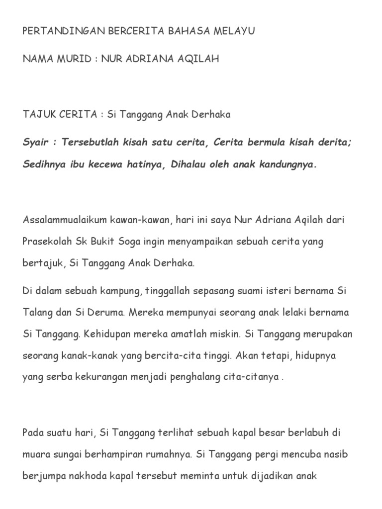 Teks Bercerita Bahasa Melayu Tahap 2