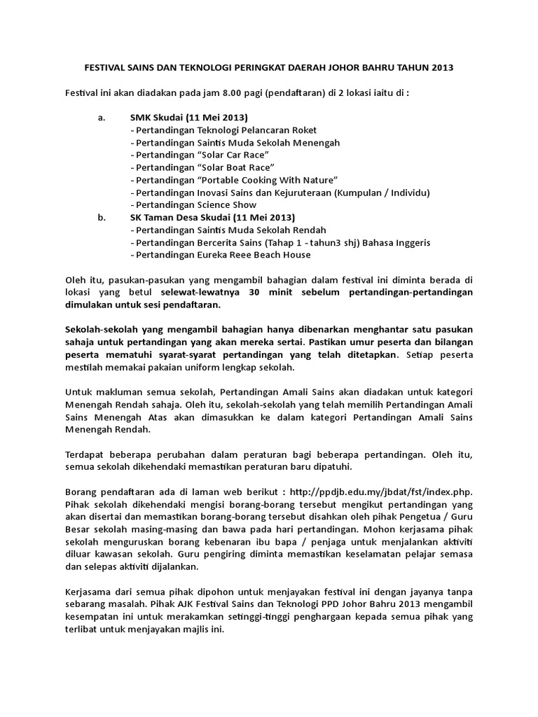 Syarat Syarat Pertandingan Bercerita Sains Tahap 1