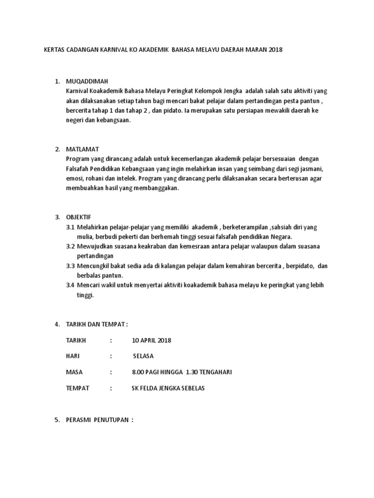 Kertas Cadangan Karnival Koakademik Bahasa Melayu Daerah Maran 2017