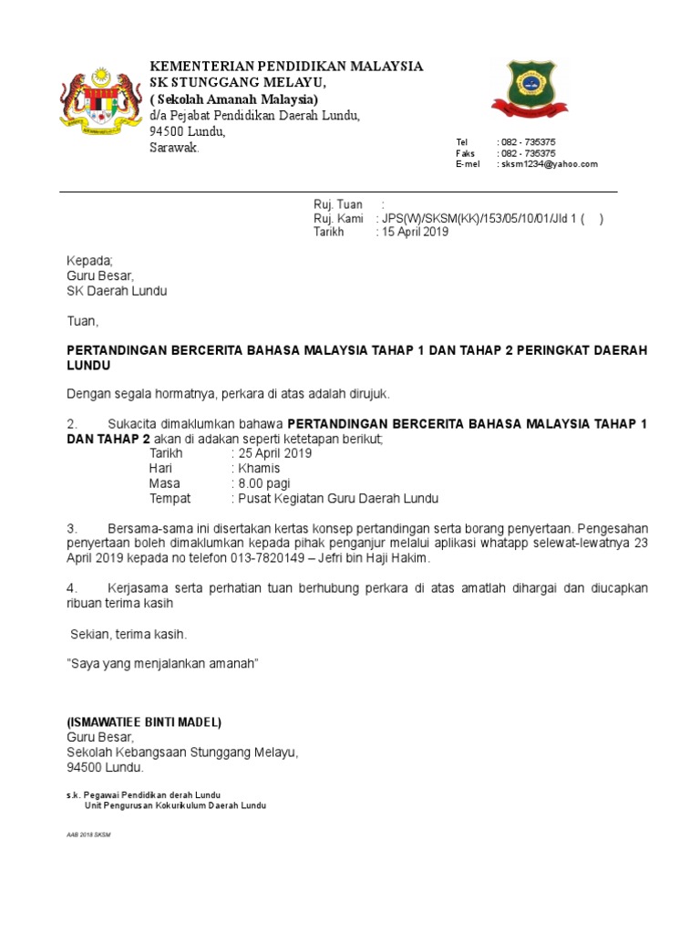 Sekolah Contoh Surat Rasmi Memohon Cuti