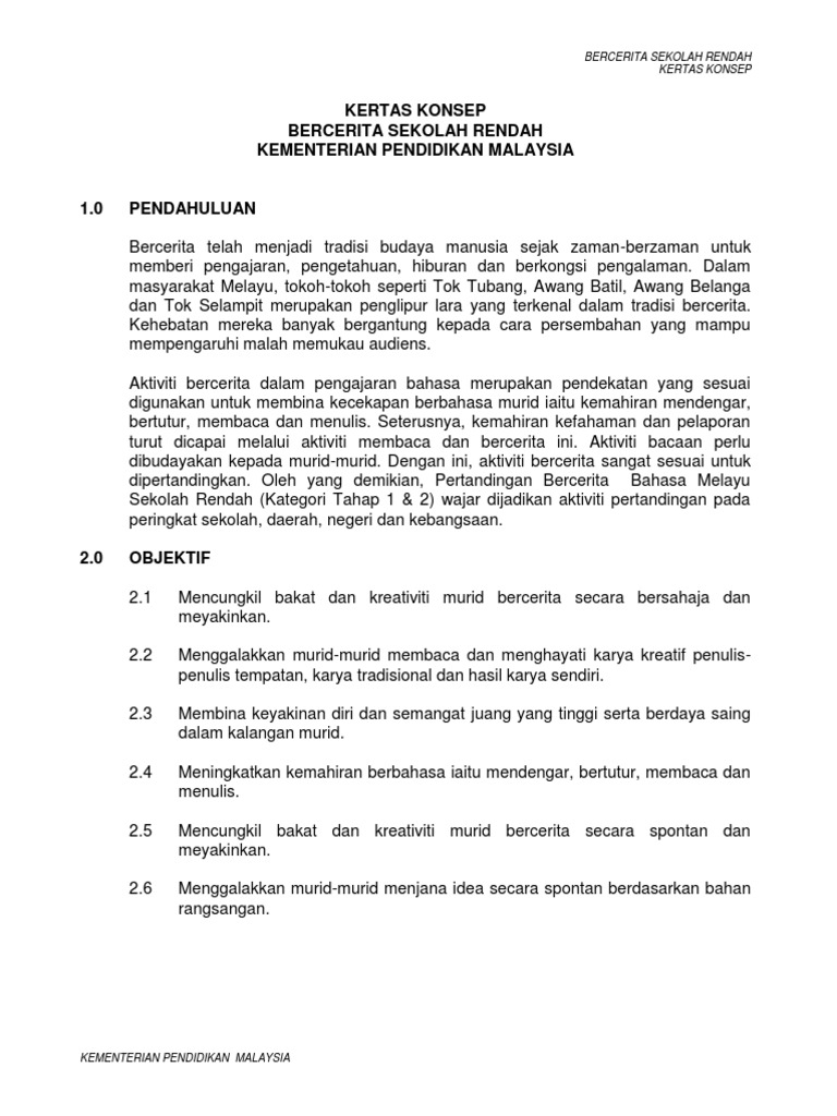 Kertas Konsep Bercerita Sekolah Rendah Kementerian Pendidikan Malaysia