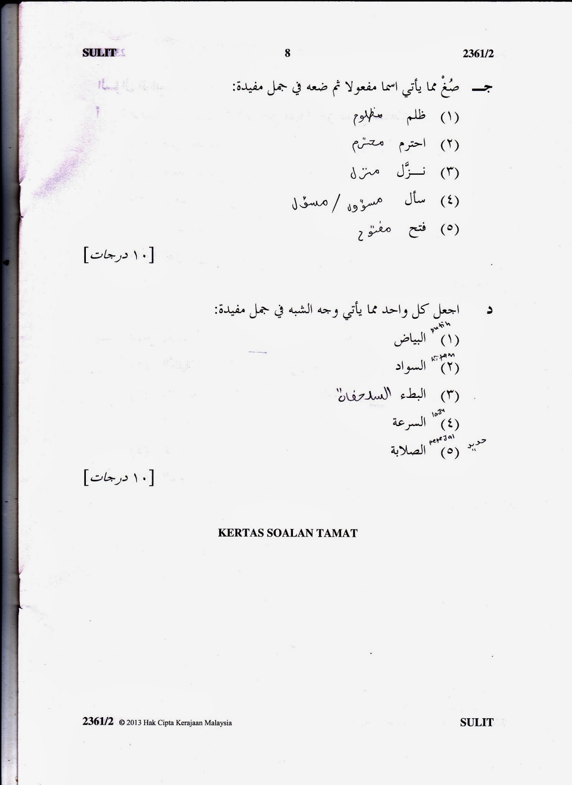 Soalan Bahasa Arab Tingkatan 2
