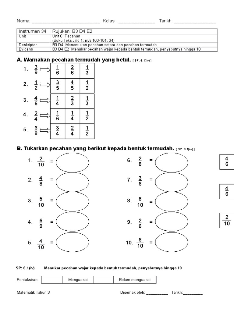 Soalan Matematik Tahun 3 Pecahan Malacca U
