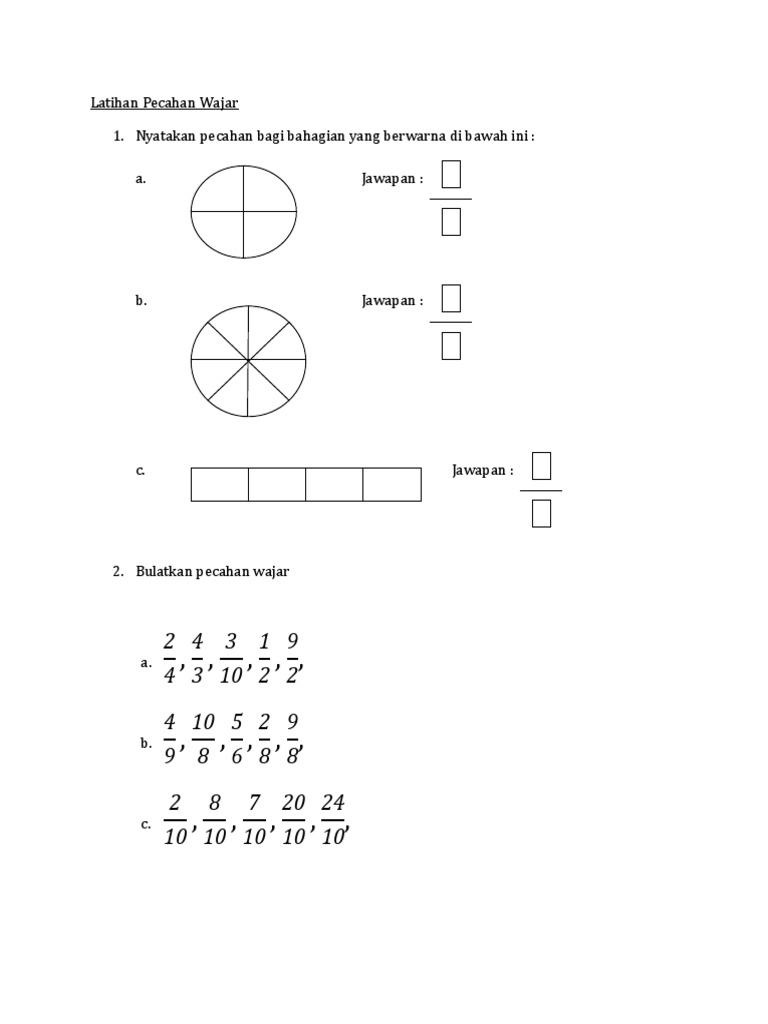 Lembaran Kerja Pecahan Wajar