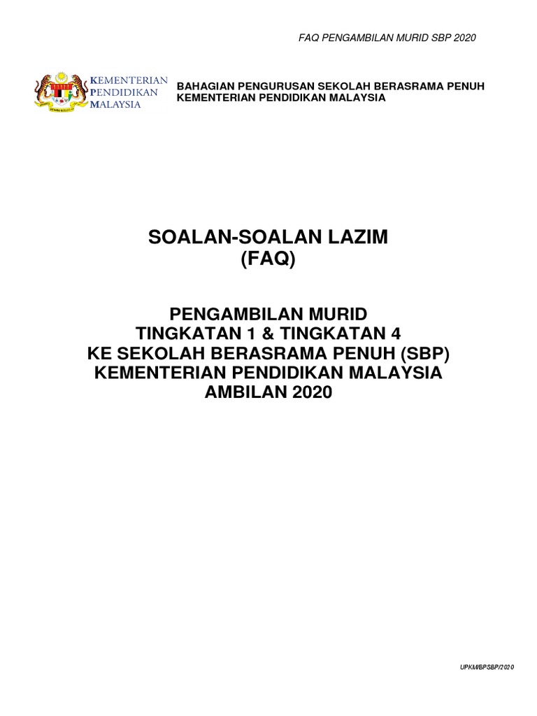 Soalan Lazim Permohonan Ke Sekolah Berasrama Penuh Sbp Tahun 2020 Bumi Gemilang