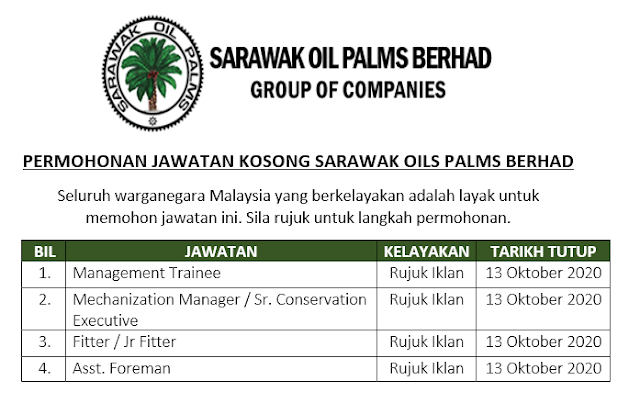 12 Kekosongan Jawatan Sarawak Oil Palms Berhad In 2020 Sarawak Job