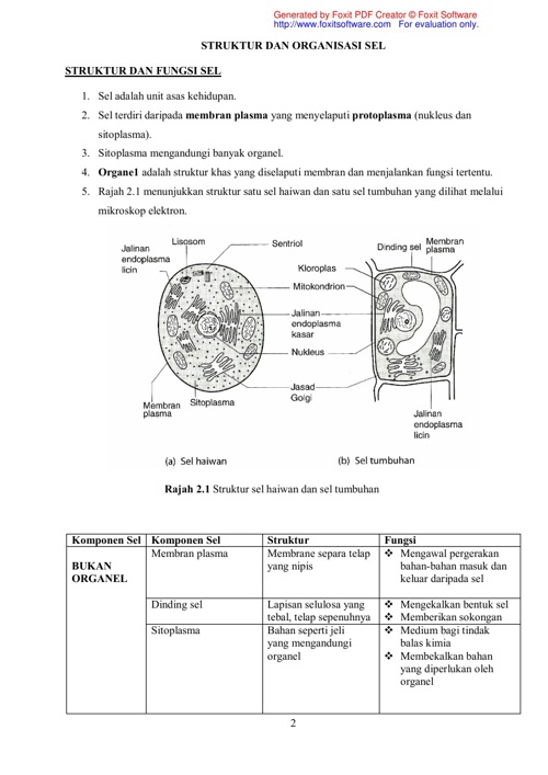 Topik 3 Struktur Sel Dan Fungsi Pdf Document