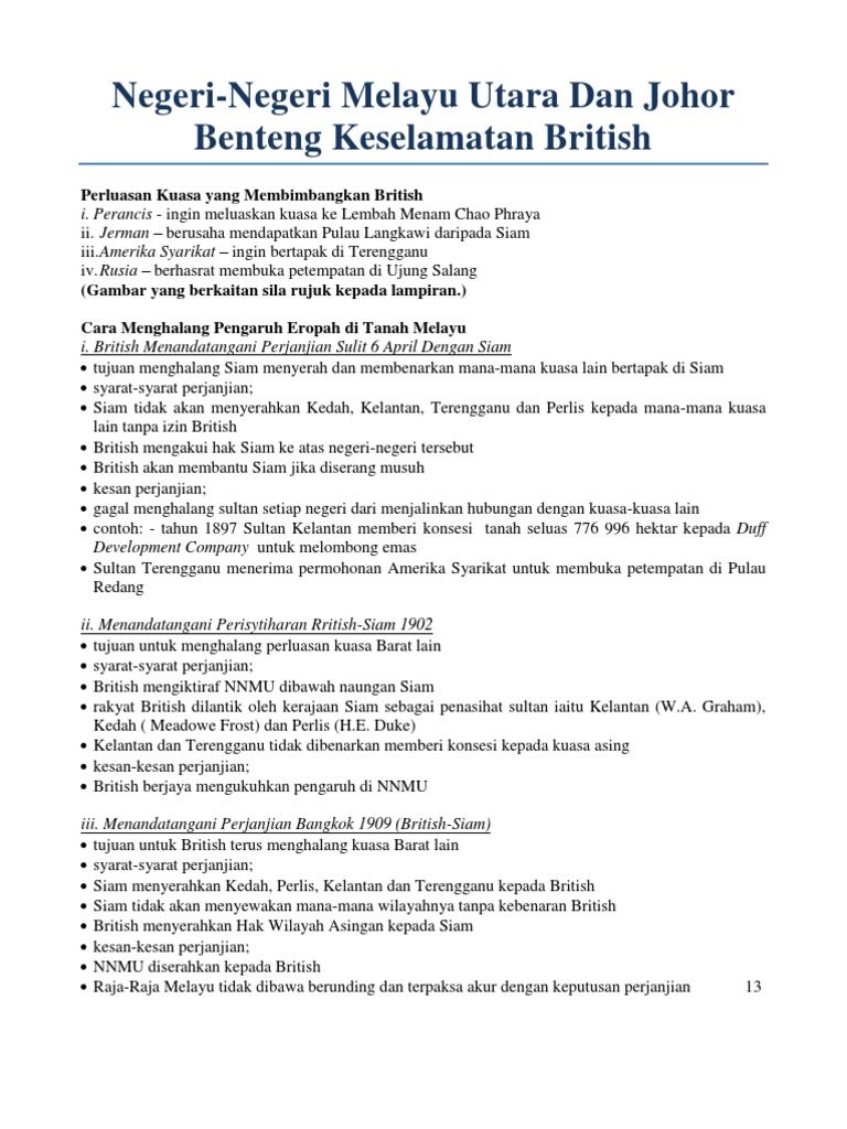 Nota Sejarah Bab 3 Negeri Melayu Utara Dan Johor Benteng Keselamatan British