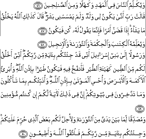 Surat Ali Imran Ayat 46 47 48 49 50 Dan Artinya Terjemahannya Alquran Surat Ayat